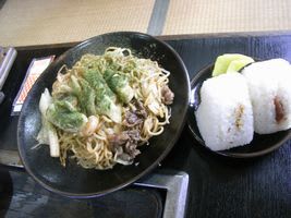 スペシャルそば焼きと、手作りおにぎり