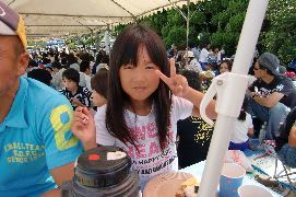「あみ笠に はじける笑顔 阿波美人」の