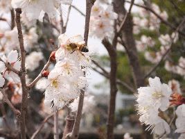 裏の公園のさくらんぼの木に花が咲き