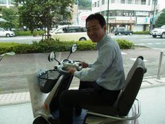 あらあら、村上さんが四輪電気カーに乗ってる
