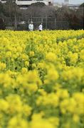 菜の花畑は黄色く満開」
