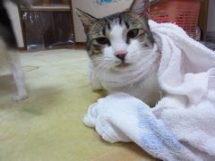 バスタオルでフキフキ中