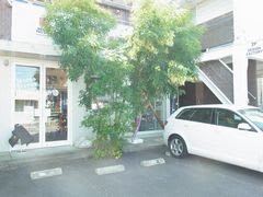 木々の緑とお店の佇まいが