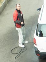 宇山和雄君はお友達のお車の車検整備中