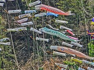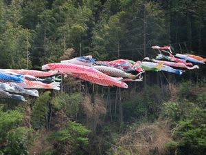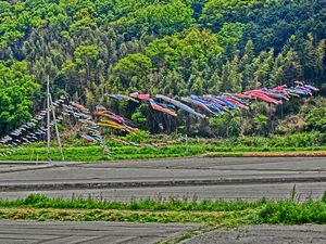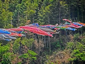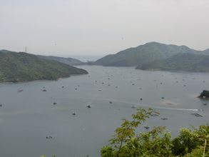 内の海には筏船がたくさん出ていました