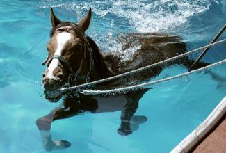 リハビリ中の馬が初泳ぎを行った