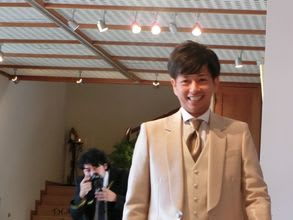 健ちゃん、ベージュのスーツで登場