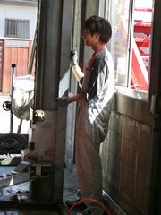 ホイルシリンダーオーバーホール中の田中君