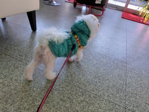 コートをお召しになったモン姫ちゃまです
