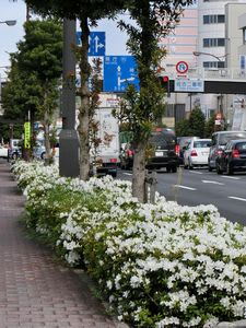 国道のツツジがいつの間にか満開になっていることに
