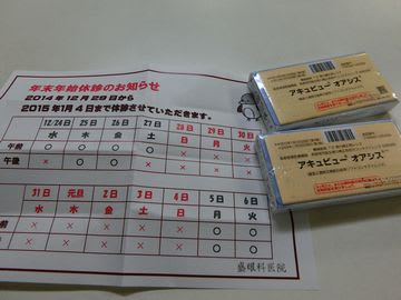 年末年始の診察日のお知らせをくれました