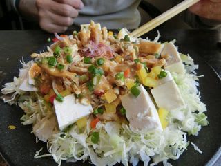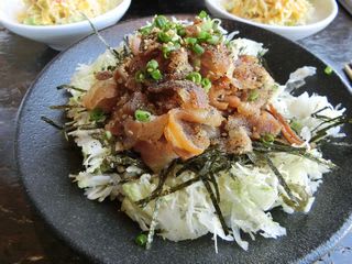 たっぷりのキャベツの千切りの上に
