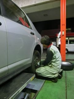国道店近藤君は、冬タイヤの履き替え中です