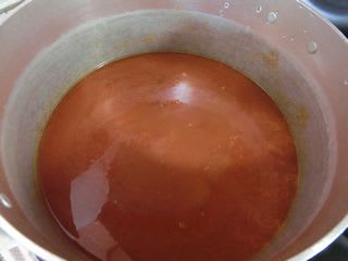煮たったトマト鍋スープに