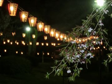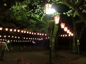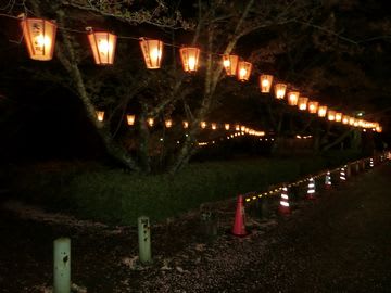 登り口からぼんぼりが左右に灯され