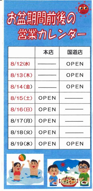 弊社のお盆期間前後の予定は