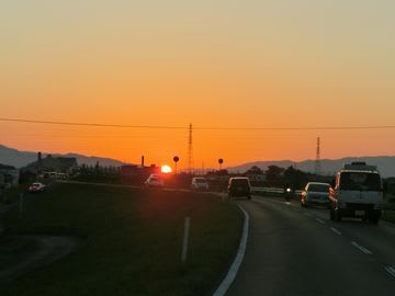 土手からほんの一瞬見えた沈みゆく夕陽です