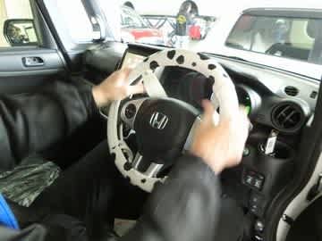 ハンドルカバーを取り付け中