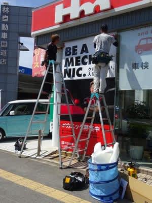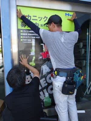 国道店の窓にステッカーを貼ってもらいました