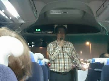 研修は、移動のバスの中でして、