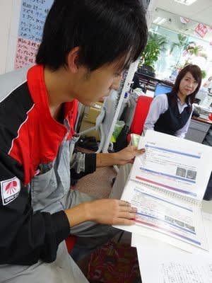 山岡店長が引き渡し時のお車の確認