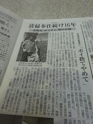 「清掃奉仕を続けて16年」というタイトルで