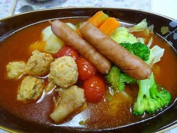 表紙の写真は、カゴメの完熟トマト鍋スープを使ったおかず