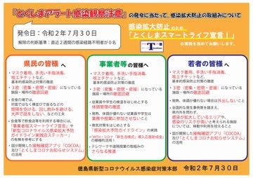 「とくしまアラート」は「感染観察注意」