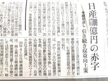 提携した日産自動車も6700億円の赤字って・・・
