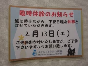 2月13日は臨時休診ですって