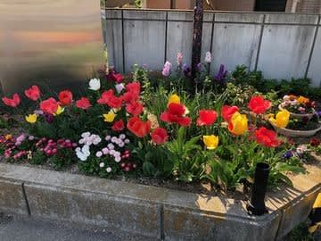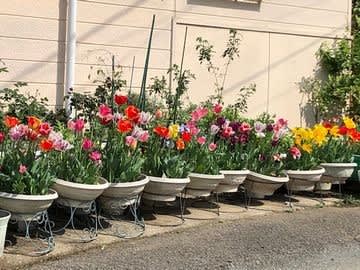 近所のおばちゃんが作っているチューリップも満開