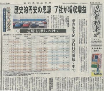2022年11月14日(月) 歴史的円安の恩恵 自動車7社が増収増益