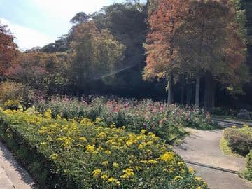 公園内、秋の花が満開で