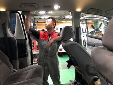 田中一也さんは車検整備の仕上げ中