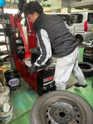 近藤工場長はタイヤ交換