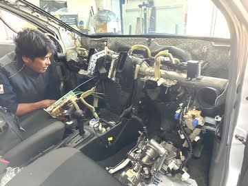 ダッシュ周りをほとんど取り外しています