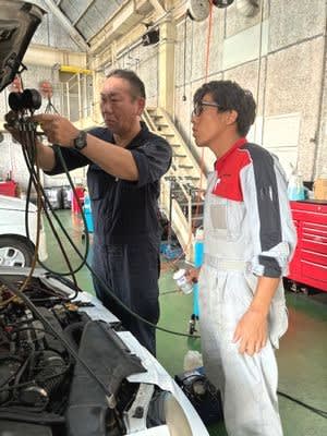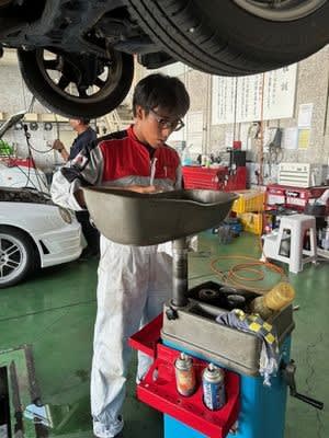 田中一也さんは車検整備中でした