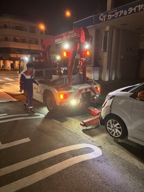 レッカーの作業員の方たち、24時間体勢で