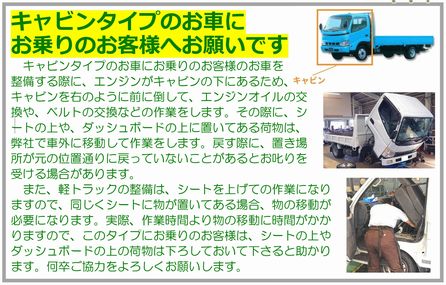 ・キャビンタイプのお車にお乗りのお客様へ
