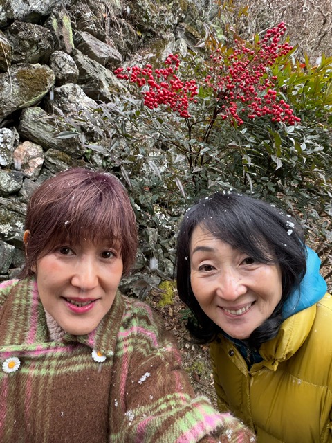 父がよく持ち帰っていた南天の前で妹もTAKAKOと✌️