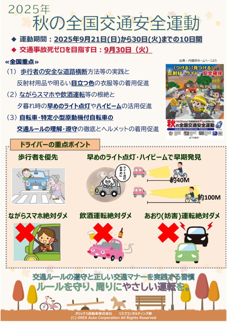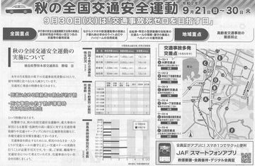 秋の全国交通安全運動期間となっています