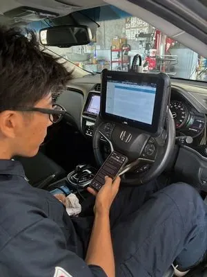 早速診断器をつないで診断中